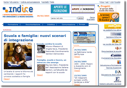 Sito dell'Istituto Nazionale di Documentazione per l'Innovazione e la Ricerca Educativa